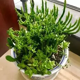 松虫又名天锦星、金钱章,为多年生草本,叶片紧密排列,叶面有淡绿色斑点,植株有粗大的木质茎,容易长侧…