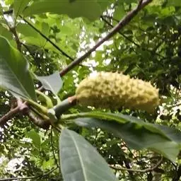 蛋黄果 Baehni),山榄科桃榄属小乔木。枝被褐色,短绒毛;叶窄椭圆形,先端渐尖;花生于叶腋,…