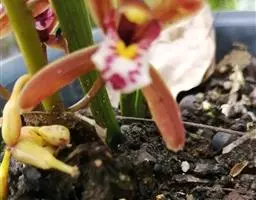 大序隔距兰 Garay):茎直立,扁圆柱形,伸长,达20余厘米,通常粗5-8毫米,被叶鞘所包,…