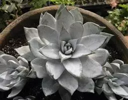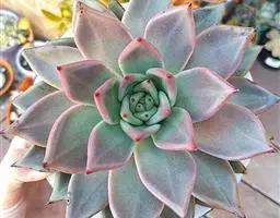 蓝石莲是景天科、拟石莲花属的多肉植物。茎部粗壮,成熟植株茎部木质化。叶片莲座型密集排列,株径不会很大,…