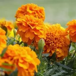 万寿菊是菊科万寿菊属一年生草本植物,别名孔雀菊、缎子花、臭菊花、西番菊、红黄草、小万寿菊、臭芙蓉、孔雀草。万寿菊茎近基部分枝。叶羽状分裂,长5-10厘米,宽4-8厘米,裂片长椭圆形或披针形,具锐齿,上部叶裂片齿端有长细芒,叶缘有少数腺体。头状花序单生,径5-8厘米,花序梗顶端棍棒状。总苞长1.8-2厘米,径1-1.5厘米,杯状,顶端具尖齿。舌状花黄或暗橙黄色,长2.9厘米,舌片倒卵形,长1.4厘米,基部成长爪,先端微弯缺。管状花花冠黄色,长约9毫米,冠檐5齿裂。瘦果线形,被微毛;冠毛有1-2长芒和2-3短而钝鳞片。花期7-9月。万寿菊中国各地均有栽培,在广东和云南南部、东南部已归化,国外原产墨西哥。万寿菊对土壤要求不严,但以肥沃疏松排水良好的土壤为好。耐移栽,种子发芽适温21-24℃,植株生长适合温度为20-29℃。喜温暖和阳光充足的环境,不