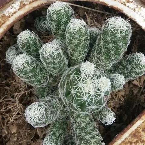 银手球,仙人掌科乳突球属,植株群生,小短圆筒形。原产墨西哥伊达尔戈州。