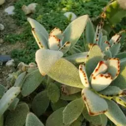 褐斑伽蓝是景天科、伽蓝菜属多年生肉质草本植物或小灌木。全株灰白色,密布白色茸毛。叶片长卵形,…