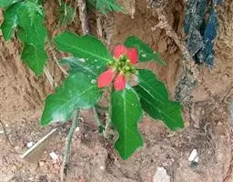 叶子表面宽厚,富肉质感且带有磨纱质感,看像石头质地;开红色小花,生于植株顶部,倒伞形密生,形状像花…