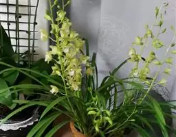 大花蕙兰,兰科兰属的常绿附生草本植物。大花蕙兰的假鳞茎椭圆形,粗大;根多为肉质圆柱状,粗壮肥大,…
