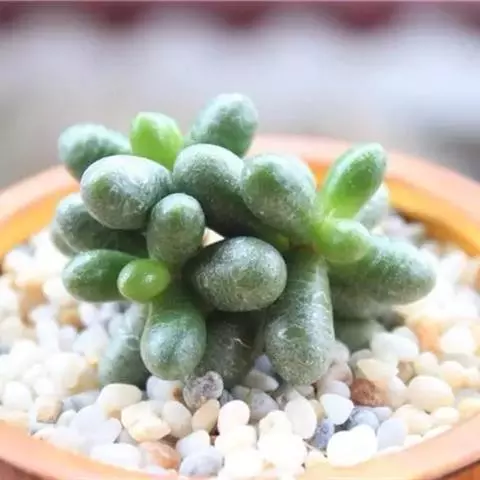 玉米石是景天科、景天属植物。多年生草本多浆植物。植株低矮丛生,多分枝。叶膨大成圆筒形、卵形或近小球形,…