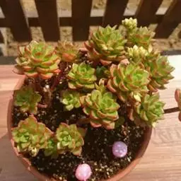 红化妆是虎耳草目、景天科、拟石莲花属植物,是多茎莲与静夜的杂交后代。…