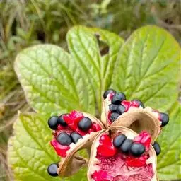 正常花的雄蕊多数,结籽力强,种籽成熟度也高,雌蕊瓣化严重的花,结籽少而不实或不结籽,完全花雄蕊离生,心皮一般5枚,少有8枚,各有瓶状子房一室,边缘胎座,多数胚珠,骨果五角,每一果角结籽7~13粒,种籽类圆形,成熟时为共黄色,老时变成黑褐色,成熟种子直径0.6~0.9厘米,千粒重约400克。