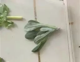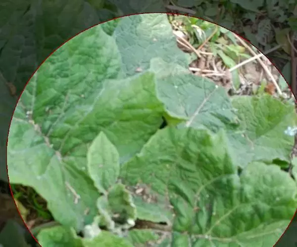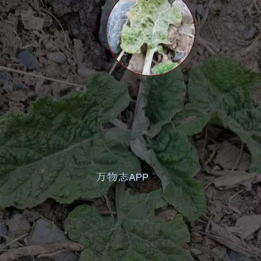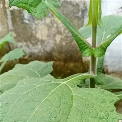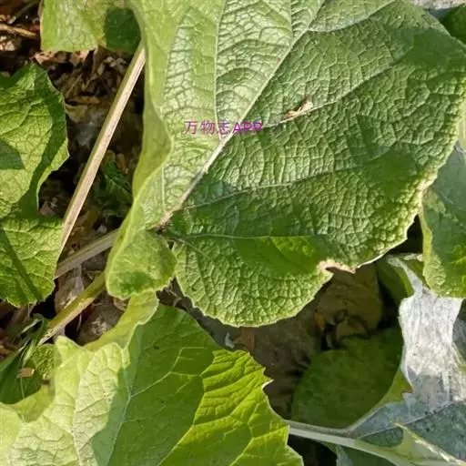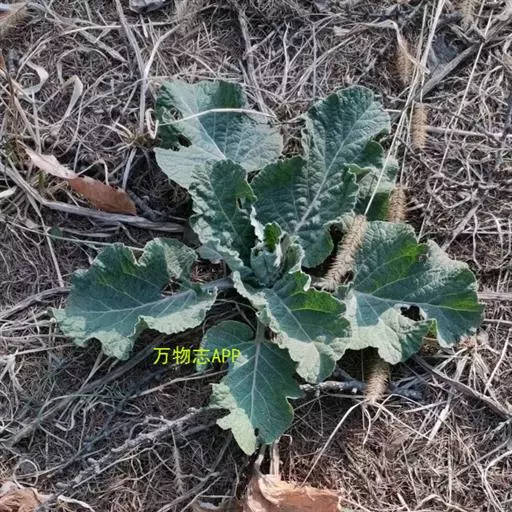 基生叶宽卵形,长达30厘米,宽达21厘米,边缘稀疏的浅波状凹齿或齿尖,基部心形,有长达32厘米的叶柄,两面异色,上面绿色,有稀疏的短糙毛及黄色小腺点,下面灰白色或淡绿色,被薄绒毛或绒毛稀疏,有黄色小腺点,叶柄灰白色,被稠密的蛛丝状绒毛及黄色小腺点,但中下部常脱毛。茎生叶与基生叶同形或近同形,具等样的及等量的毛被,接花序下部的叶小,基部平截或浅心形。