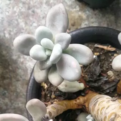 白牡丹(xGraptoveria ‘Titubans’),景天科多肉植物,由风车草属的胧月(Graptopetalum paraguayensis)与拟石莲花属 的静夜(Echeveria derenbergii)杂交培育而来。茎叶多肉化,叶色灰白至灰绿,叶片表面有淡淡的白粉。
