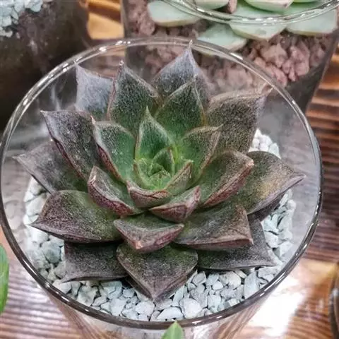 米洛可景天科拟石莲花属多肉植物。别名为巧克力方砖。