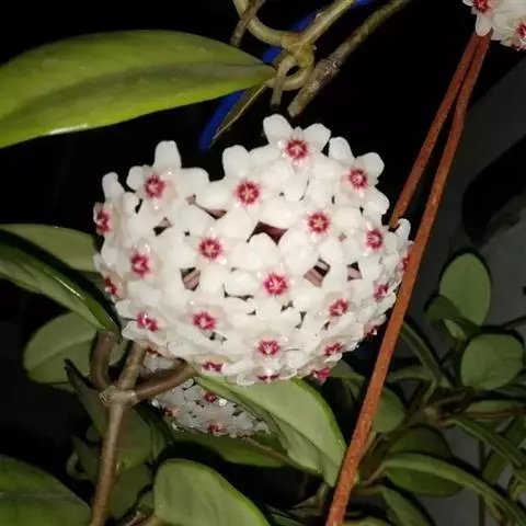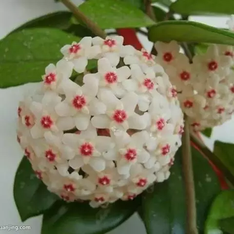 圆锥状聚伞花序一至多歧,通常顶生,有时腋生,花梗长约4毫米,被短柔毛;苞片膜质,披针形,长约4毫米,宽约1毫米;小苞片长1-5毫米,宽0.5毫米;花萼5深裂,裂片披针形或卵圆状披针形,两面被短柔毛,边缘膜质,长约1.5毫米,宽约0.6毫米;花冠圆筒状钟形,紫红色或粉红色,两面密被颗粒状突起,花冠筒长6-8毫米,直径2-3毫米,花冠裂片基部向右覆盖,裂片卵圆状长圆形,稀宽三角形,顶端钝或浑圆,与花冠筒几乎等长,长3-4毫米,宽1.5-2.5毫米,每裂片内外均具3条明显紫红色的脉纹;雄蕊着生在花冠筒基部,与副花冠裂片互生,长2-3毫米;花药箭头状,顶端渐尖,隐藏在花喉内,背部隆起,腹部粘生在柱头基部,基部具耳,耳通常平行,有时紧接或辏合,花丝短,密被白茸毛;雌蕊长2-2.5毫米,花柱短,上部膨大,下部缩小,柱头基部盘状,顶端钝,2裂;子房由2枚离生心皮所组成,被白色茸毛,每心皮有胚珠多数,着生在子房的腹缝线侧膜胎座上;花盘环状,肉质,顶端不规则5裂,基部合生,环绕子房,着生在花托上。