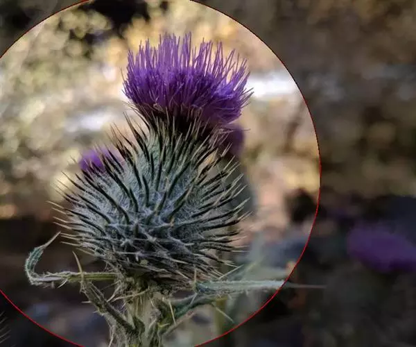 两年生植物。首年长出簇叶,次年开花,高1~2.5米。叶有深裂口而多刺,长15~25厘米 (花附近的叶子较短)。花序直径2.5~5厘米,粉紫色,小花形式单一,只有管状花,没有舌状花。种子有冠毛,藉以随风传播。