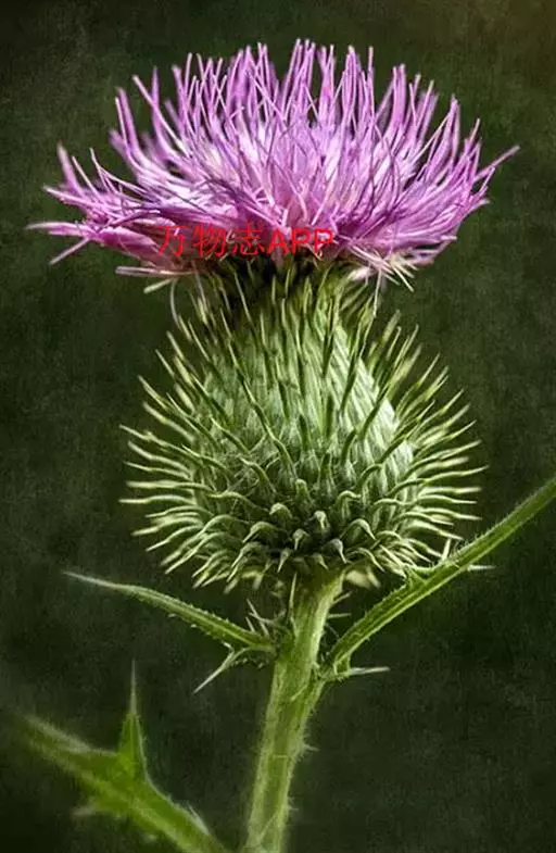 魁蓟菊科蓟属植物,多年生草本,高达1米,茎枝被长毛,基部和下部茎生叶长椭圆形或倒披针状长椭圆形,…