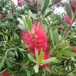 红千层是桃金娘科红千层属的常绿小乔木植物。红千层树皮坚硬,灰褐色,嫩枝有棱,初时有长丝毛,…