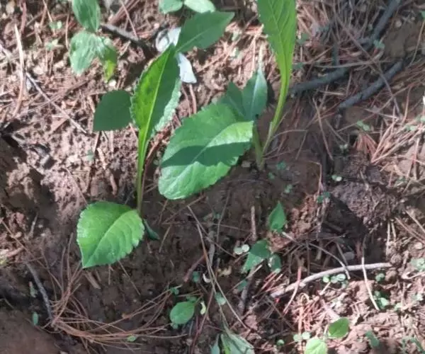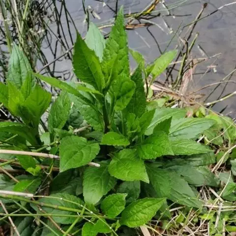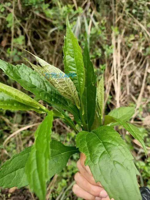 多年生草本,根状茎斜升。茎直立,高40-50厘米,粗壮,基部有纤维状枯叶残片且常有不定根,有棱及沟,被疏粗毛,有疏生的叶。基部叶在花期枯落,长圆状或椭圆状匙形,下半部渐狭成长柄,连柄长20-50厘米,宽3-13厘米,顶端尖或渐尖,边缘有具小尖头的圆齿或浅齿。下部叶匙状长圆形,常较小,下部渐狭或急狭成具宽翅的柄,渐尖,边缘除顶部外有密锯齿;中部叶长圆形或长圆披针形,无柄,全缘或有浅齿,上部叶狭小;全部叶厚纸质,上面被短糙毛,下面被稍疏的但沿脉被较密的短粗毛;中脉粗壮,与5-10对侧。 脉在下面突起,网脉明显。