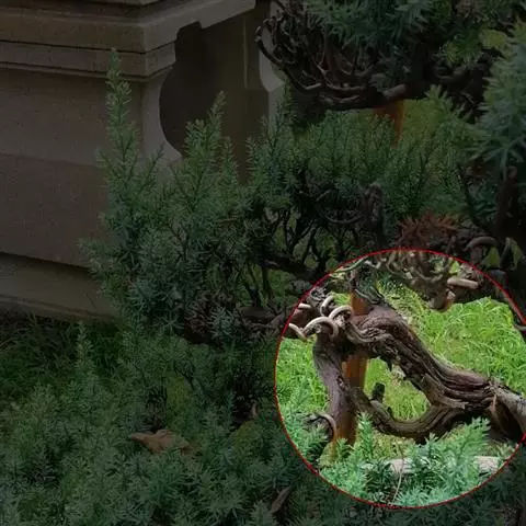 三、人工式整形:龙柏树形除自然生长成塔形外,常根据设计意图,创造出各种各样的形体,但应注意树木的形体要与四周园景谐调,线条不宜过于繁琐,以轮廓鲜明简练为佳。整形的具体做法视修剪者的技术而定,也常借助于棕绳或铅丝,事先作成 轮廓样式进行整形修剪。将其攀揉盘扎成龙、马、狮、鹿、象等动物形象。