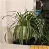 金心吊兰地下部有根茎,叶细长,线状披针形,中心具黄白色纵条纹,基部抱茎,鲜绿色。叶腋抽生匍匐枝,伸出株丛,弯曲向外,顶端着生带气生根的小植株。花白色,花被6片,花期春夏季。