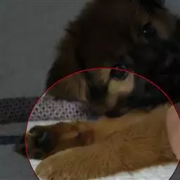 【前躯】肩部——肌肉丰满,长。背线——肩胛上缘高于背部。肩胛骨和肱骨成直角,并且长度相等。肘关节既不内翻也不外展。前肢——骨骼较发达,直,肌肉丰满。关节部肌肉少,坚固。狼爪可以去除。脚垫厚,有弹性,为黑色。脚紧凑,像猫足。脚趾之问有少量毛,毛越少越好。脚趾甲为黑色者较理想。