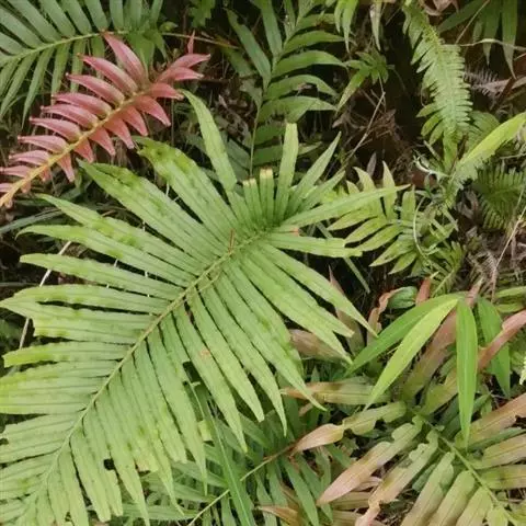 苏铁蕨是乌毛蕨科苏铁蕨属植物。根状茎粗壮,木质,直立圆柱状,直径达15厘米或更粗,…