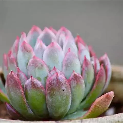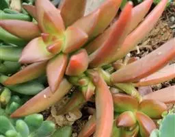 小红衣是景天科、拟石莲花属的一种多肉植物。叶片匙形,扁平细长,叶表具白粉,有明显的半透明边缘,…