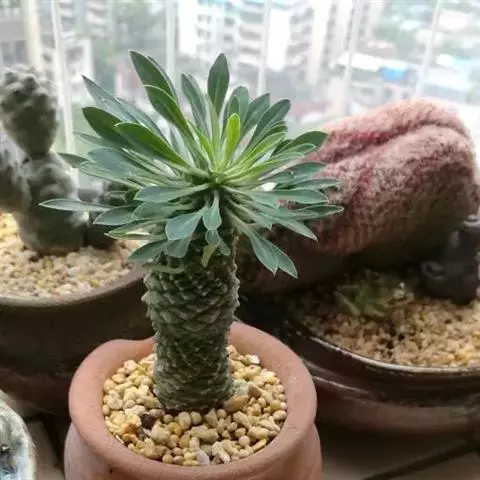 松虫又名天锦星、金钱章,为多年生草本,叶片紧密排列,叶面有淡绿色斑点,植株有粗大的木质茎,容易长侧…