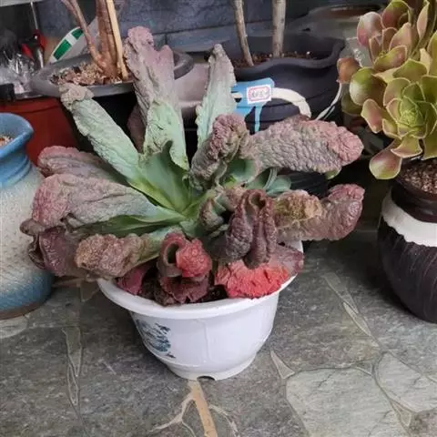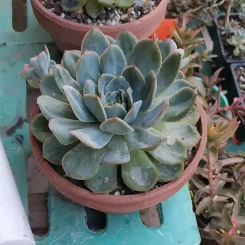 薄叶蓝鸟 叶片蓝绿色,叶尖红色,带粉,花型紧凑,非常漂亮。原产于墨西哥,现世界各地均有栽培。