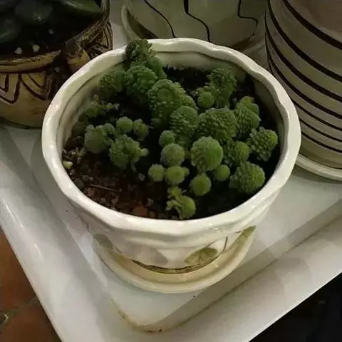 玉米石是景天科、景天属植物。多年生草本多浆植物。植株低矮丛生,多分枝。叶膨大成圆筒形、卵形或近小球形,…