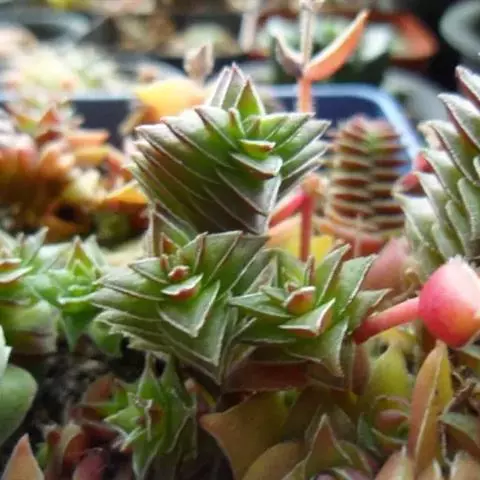 灯美人是景天科的园艺品种,多肉植物。叶片近柱状,丛生,在日照时间长、温差大的环境下会呈现橙粉色。