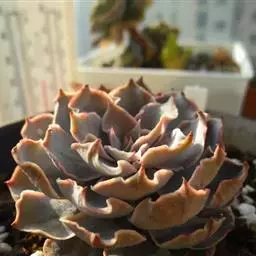 蓝石莲是景天科、拟石莲花属的多肉植物。茎部粗壮,成熟植株茎部木质化。叶片莲座型密集排列,株径不会很大,…