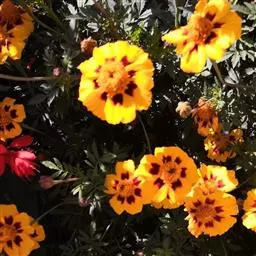 万寿菊是菊科万寿菊属一年生草本植物,别名孔雀菊、缎子花、臭菊花、西番菊、红黄草、小万寿菊、臭芙蓉、孔雀草。万寿菊茎近基部分枝。叶羽状分裂,长5-10厘米,宽4-8厘米,裂片长椭圆形或披针形,具锐齿,上部叶裂片齿端有长细芒,叶缘有少数腺体。头状花序单生,径5-8厘米,花序梗顶端棍棒状。总苞长1.8-2厘米,径1-1.5厘米,杯状,顶端具尖齿。舌状花黄或暗橙黄色,长2.9厘米,舌片倒卵形,长1.4厘米,基部成长爪,先端微弯缺。管状花花冠黄色,长约9毫米,冠檐5齿裂。瘦果线形,被微毛;冠毛有1-2长芒和2-3短而钝鳞片。花期7-9月。万寿菊中国各地均有栽培,在广东和云南南部、东南部已归化,国外原产墨西哥。万寿菊对土壤要求不严,但以肥沃疏松排水良好的土壤为好。耐移栽,种子发芽适温21-24℃,植株生长适合温度为20-29℃。喜温暖和阳光充足的环境,不
