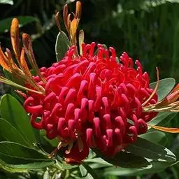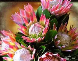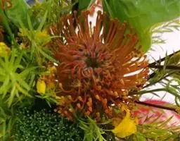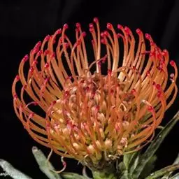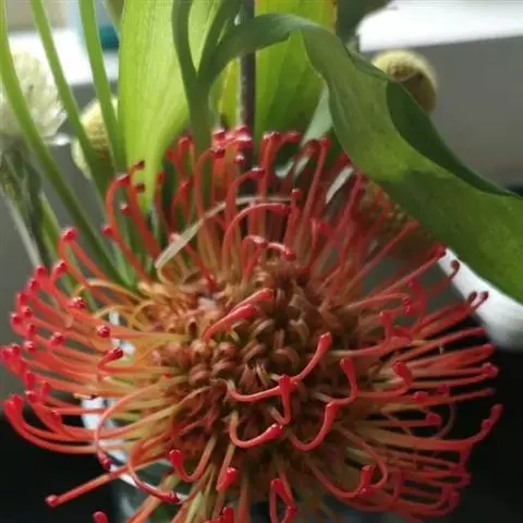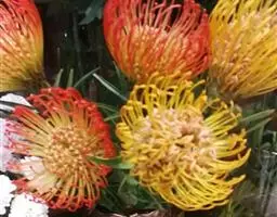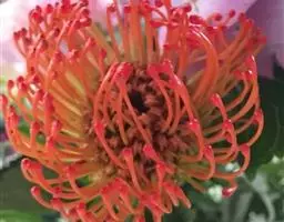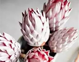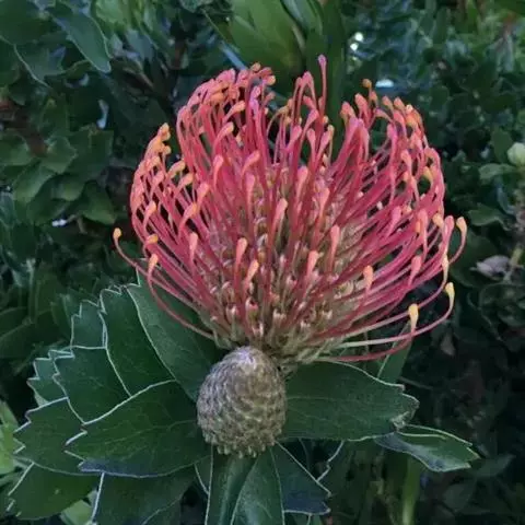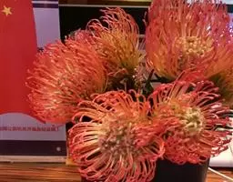 帝王花,山龙眼科帝王花属多年生常绿灌木植;茎干粗壮,叶色翠绿光亮;花朵呈圆球状;其苞片有的完全打开,…