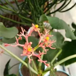 第八、繁殖:红雀珊瑚可用5—15厘米长的茎段进行扦插繁殖。象其它大戟科植物一样,红雀珊瑚一经切割便会流出白色乳汁,若把切口浸入水中,就能止住。插条要阴干一天,让切口干结后再插在基质上。