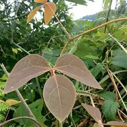 猫儿屎修剪能极显著地提高先年母茎的粗度和材积,提高当年木通药材产量和质量。结合新梢引上搭架第一道铁丝、绑在第二道铁丝和剪掉超过第二道铁丝相互缠绕结团的小茎等田间管理工作进行。5月中旬,每条先年母茎选留2-3个新梢,第4-8束幼叶时摘掉新梢茎尖,称为4/4修剪或2/8修剪。5月中、下旬间隔5天左右修剪1次。