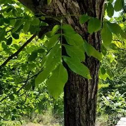 乔木,高30米;树冠阔椭圆形。树皮暗灰色,老时沟裂。小枝圆形,淡黄色,无毛。芽长卵形,富粘质,赤褐色,花芽先端向外弯曲。