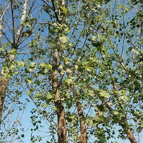黑杨,为乔木,高30米;树冠阔椭圆形。树皮暗灰色,老时沟裂。小枝圆形,淡黄色,无毛。芽长卵形,富粘质,…