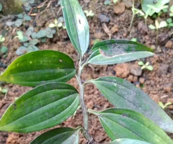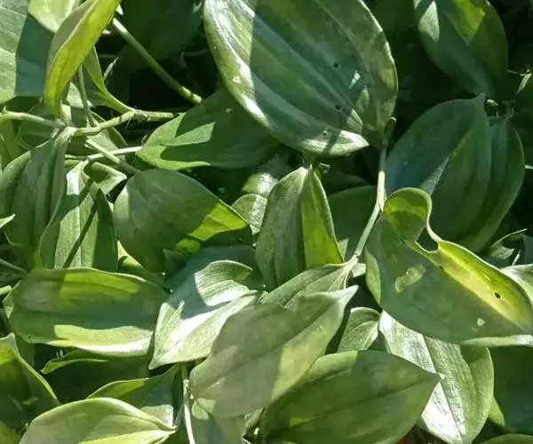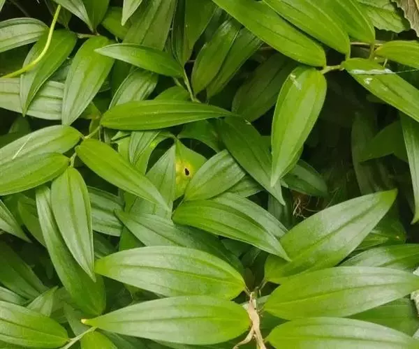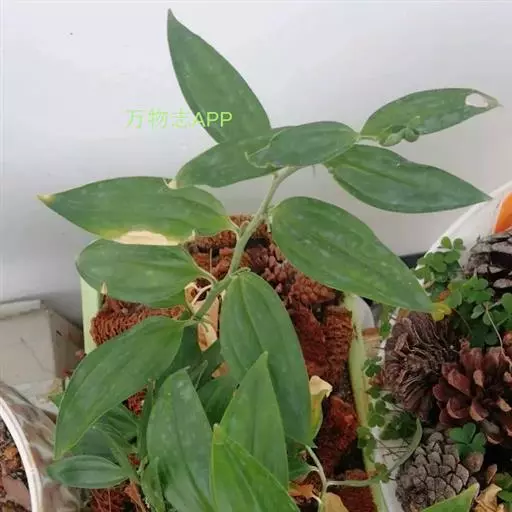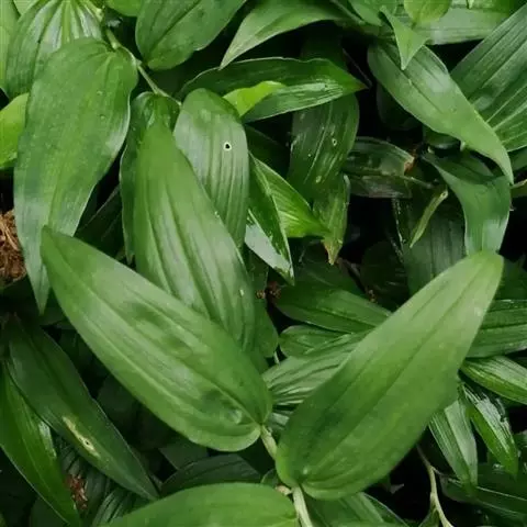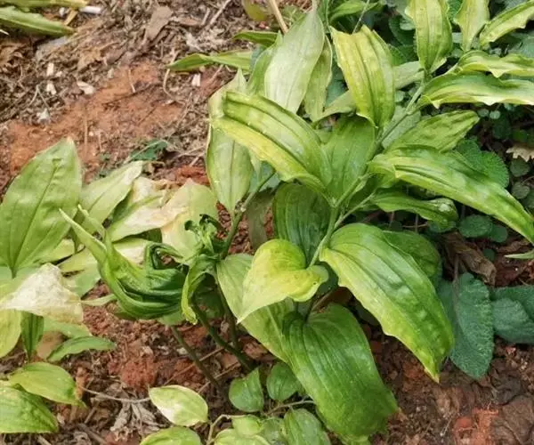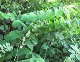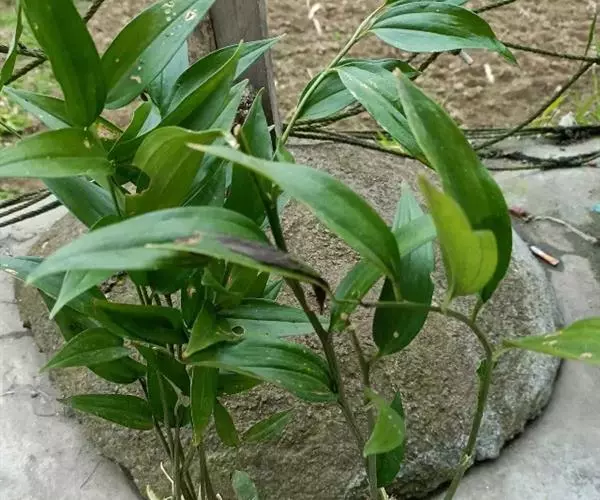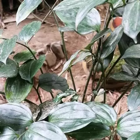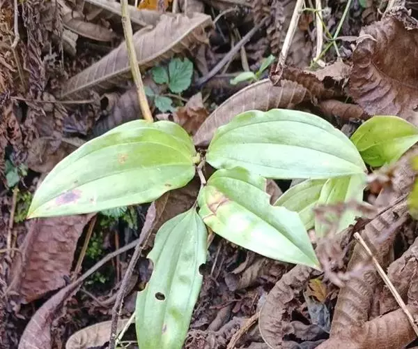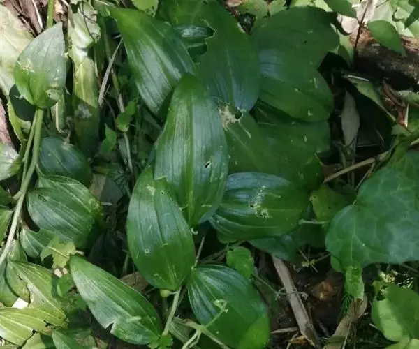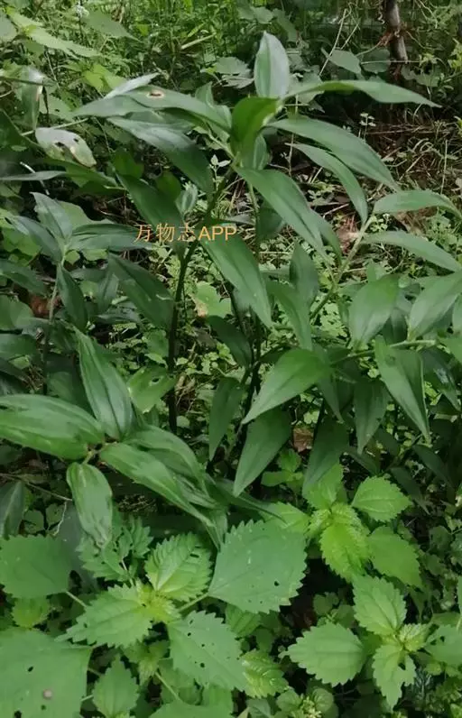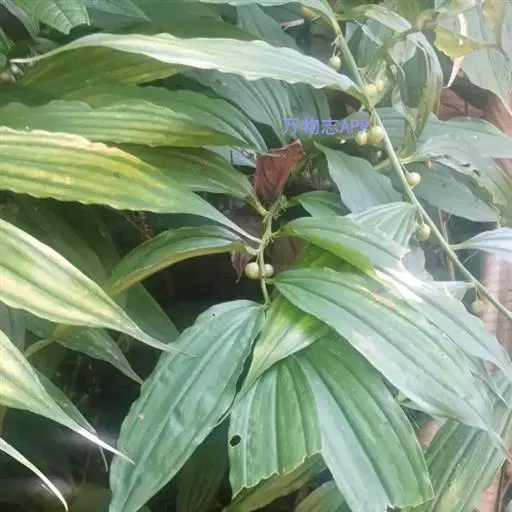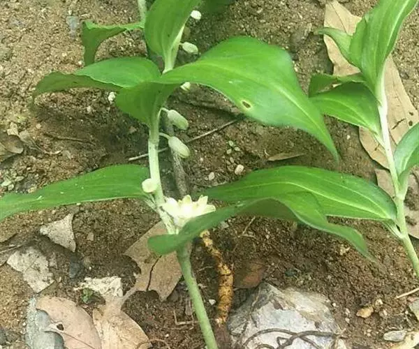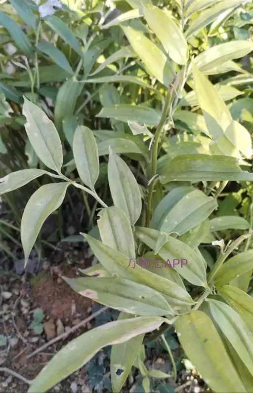 竹根七又名:假万寿竹。根状茎连珠状,粗1-1.5厘米。茎高25-50厘米。叶纸质,卵形、椭圆形或矩圆状披针形,长4-9(-15)厘米,宽2.3-4.5厘米,先端渐尖,基部钝、宽楔形或稍心形,具柄,两面无毛。花1-2朵生于叶腋,白色,内带紫色,稍俯垂;花梗长7-14毫米;花被钟形,长15-22毫米;花被筒长约为花被的2/5,口部不缢缩,裂片近矩圆形;副花冠裂片膜质,与花被裂片互生,卵状披针形,长约5毫米,先端通常2-3齿或二浅裂;花药长约2毫米,背部以极短花丝着生于副花冠两个裂片之间的凹缺处;雌蕊长8-9毫米;花柱与子房近等长。浆果近球形,直径7-14毫米,具2-8颗种子。花期4-5月,果期11月。