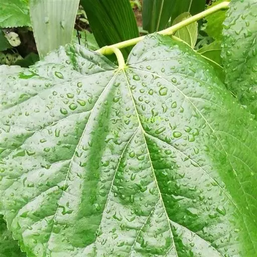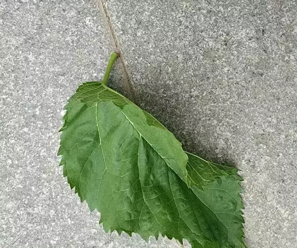 该变种和桑的区别在于叶大而厚,叶长可达30厘米,表面泡状皱缩;聚花果圆筒状,长1.5-2厘米,成熟时白绿色或紫黑色。