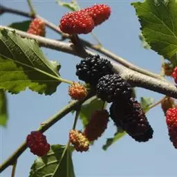 桑(拉丁名:Morus alba L.)是桑科,桑属 落叶乔木或灌木,高可达15米。树体富含乳浆,树皮黄褐色。叶卵形至广卵形,叶端尖,叶基圆形或浅心脏形,边缘有粗锯齿,有时有不规则的分裂。叶面无毛,有光泽,叶背脉上有疏毛。雌雄异株,5月开花,葇荑花序。果熟期6-7月,聚花果卵圆形或圆柱形,黑紫色或白色。喜光,幼时稍耐阴。喜温暖湿润气候,耐寒。耐干旱,耐水湿能力强。