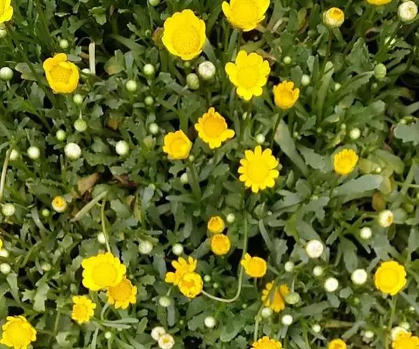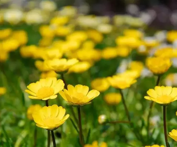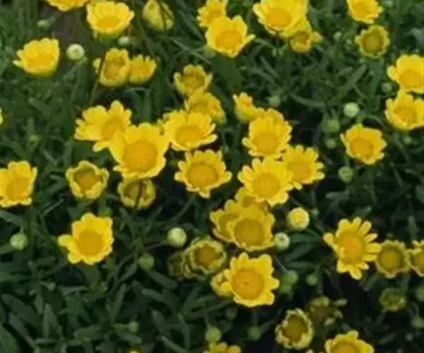 黄晶菊是二年生草本花卉,耐寒性强,开花早,花期长,花繁色艳,极具观赏性。叶色葱绿,头状花序顶生,盘状,中央筒状花聚成花心,外围舌状花扁平。成片栽培的黄晶菊,繁花遮叶,与同属异种的姊妹花白晶菊混植或组合盆栽,白黄点缀竞相开放,具有很高的观赏价值。黄晶菊适于露地花坛、花境种植,作镶边或色块构图效果良好;亦可盆栽,装点庭院、美化居室,是早春用于观赏和环境美化不可多得的优良花卉。