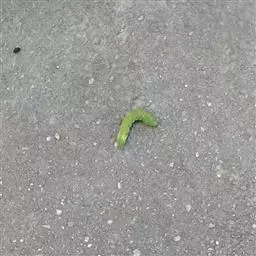 幼虫,即俗称的菜青虫。幼虫共5龄,末龄幼虫体长28~35毫米。幼虫初孵化时灰黄色,后变青绿色,体圆筒形,中段较肥大,背部有一条不明显的断续黄色纵线,气门线黄色,每节的线上有两个黄斑。体密布细小黑色毛瘤,各体节有4~5条横皱纹 。