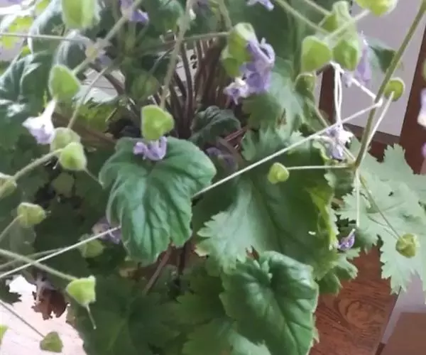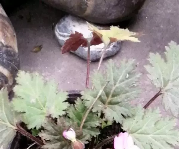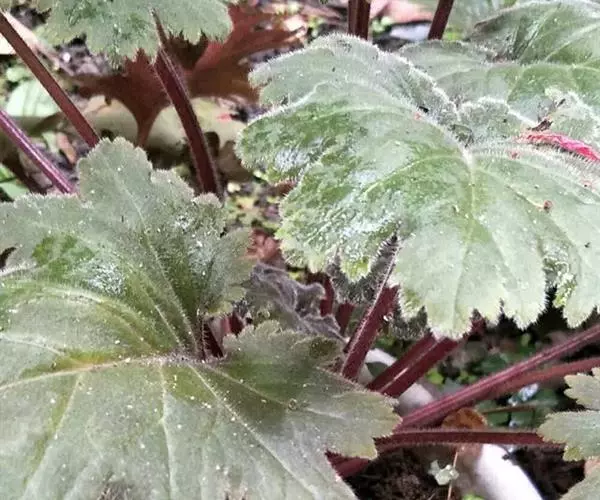 多年生草本,全株被多细胞柔毛。根状茎稍粗壮,有时具分枝。叶多数簇生;叶片轮廓阔卵圆形至椭圆状卵形或近圆形,长3-13厘米,宽2-10厘米,先端钝圆,基部心形或近截形,边缘5-9裂,深约达叶片半径的1/2,裂片矩圆形,每边具2-5缺刻状粗齿,鲜时稍厚,干时近膜质,中肋稍宽扁,侧脉3-4对,最下方的1对基出;叶柄长4-15厘米,鲜时肥厚多汁,常带淡紫红色。