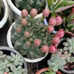 绯花玉 Speg.)是仙人掌科、裸萼球属多肉植物,植株呈扁球形,表皮墨绿色,刺针状,…
