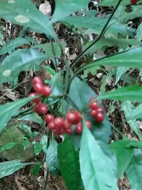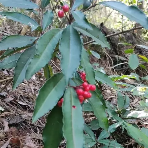 出自《本草图经》:百两金,叶似荔枝,初生背面俱青,结花实后,背紫面青。苗高二、三尺,有干如木,…