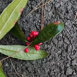 九管血属于矮小灌木,茎匍匐生长,叶片坚纸质,狭卵形或卵状披针形,伞形花序着生于侧生特殊花枝顶端,…