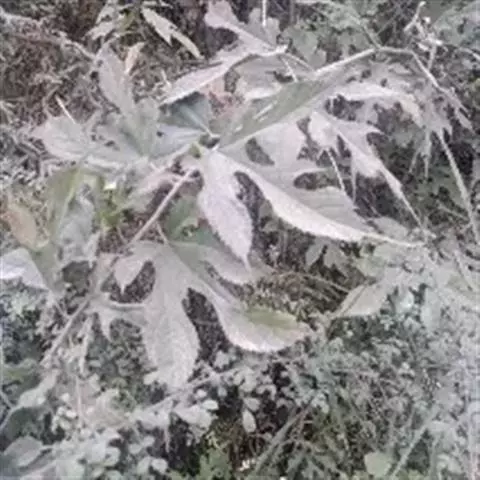 受害症状:该病多发生与枝条中下部的叶片上,发病初期,叶背产生白粉状圆形霉斑,在霉斑相应的叶面,出现淡褐色的斑块。病害严重时,霉斑扩大连接成片,白色粉末布满叶背。