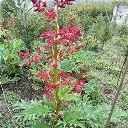 掌叶大黄蓼科,大黄属高大粗壮草本植物,高可达2米,粗壮木质根状茎。茎直立中空,叶片长宽近相等,基部…