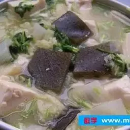 豆腐为补益清热养生食品,常食之,可补中益气、清热润燥、生津止渴、清洁肠胃。更适于热性体质、口臭口渴、肠胃不清、热病后调养者食用。现代医学证实,豆腐除有增加营养、帮助消化、增进食欲的功能外,对齿、骨骼的生长发育也颇为有益,在造血功能中可增加血液中铁的含量;豆腐不含胆固醇,为高血压、高血脂、高胆固醇症及动脉硬化、冠心病患者的药膳佳肴。也是儿童、病弱者及老年人补充营养的食疗佳品。豆腐含有丰富的植物雌激素,对防治骨质疏松症有良好的作用。还有抑制乳腺癌、前列腺癌及血癌的功能,豆腐中的甾固醇、豆甾醇,均是抑癌的有效成分。