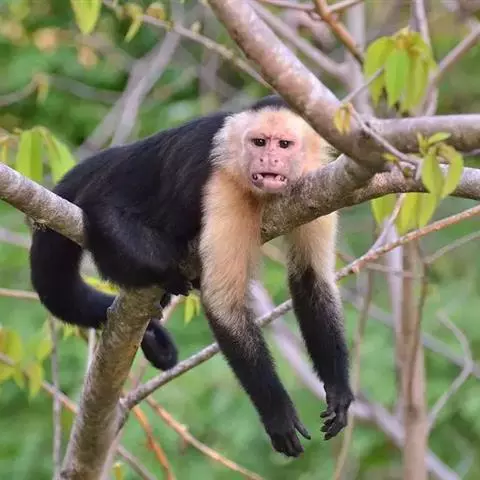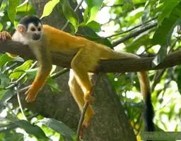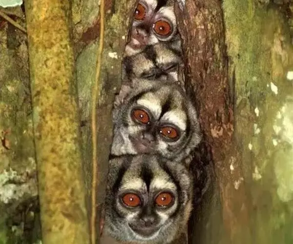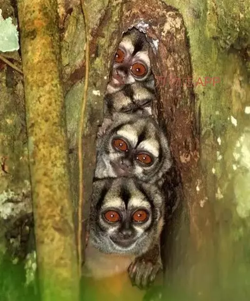 夜猴(学名:Aotus trivirgatus):体长240-370毫米,尾长316-400毫米。体重0.6-1.0千克。长相十分奇特,身体只有松鼠那么大,四肢特别细长。身上长满密毛,银灰色的皮毛柔软而浓密,上体杂有灰色和深灰,下体有浅黄色或棕色。它的眼睛集光能力很强,在近于漆黑的环境里,它照样能捕捉到正在飞行的昆虫。口吻不能完全合闭,耳朵相当小。下巴下方有可随意被膨胀并给出共振声音的的声囊。