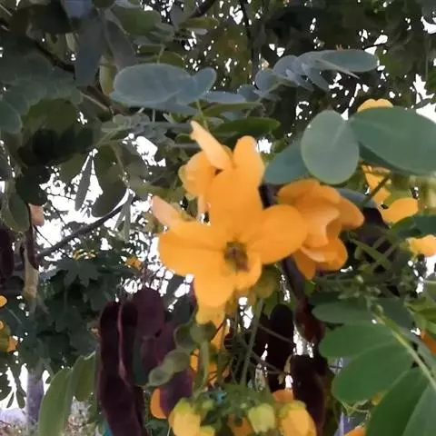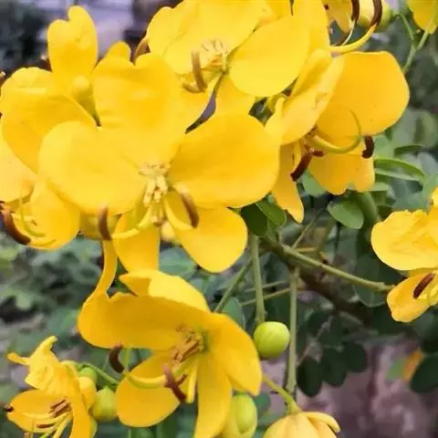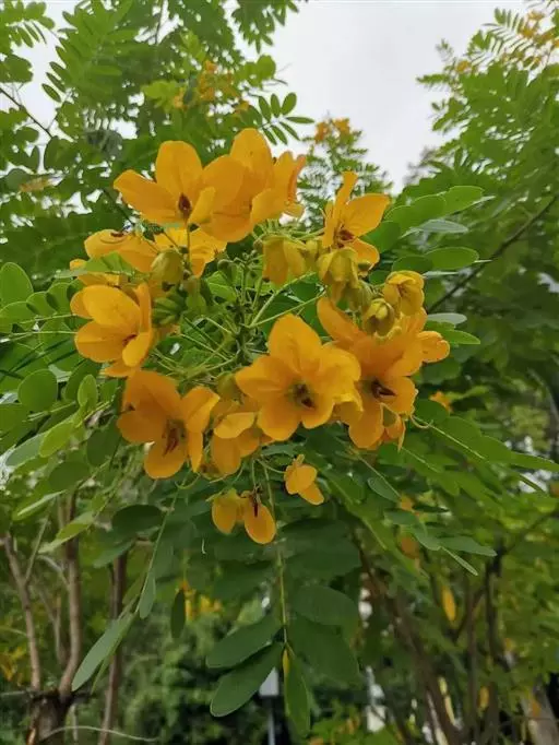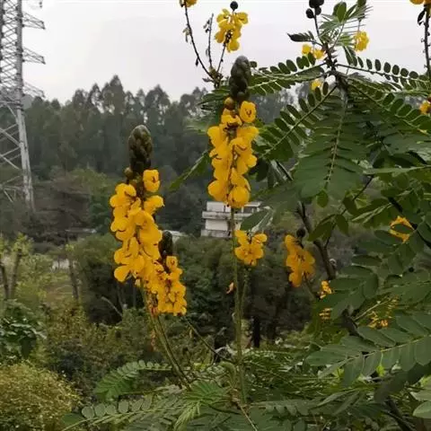 黄槐义称“黄仡槐”,是苏木科冬季落叫‘乔木。黄槐树姿优美,枝叫‘茂盛,花蕾娇小别致,花色金黄灿烂,在绿叶的衬托下:犹如翩翩起舞的蝴蝶,在阳光下,发出明亮而璀璨的光芒,富有热带特色,是美丽的观花树。